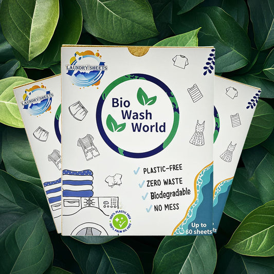 Bij Bio Wash World geloven we in het combineren van innovatie met duurzaamheid. Daarom hebben we onze wasmiddel vellen geïntroduceerd – een revolutionaire manier om je was te doen, met minimale impact op het milieu. Deze wasbladen bieden een geweldige oplossing voor het wassen van kleding zonder het gebruik van plastic flessen of zware verpakkingen. En het mooiste? Onze Wasmiddel vellen worden verpakt in een 100% gerecycled karton, wat bijdraagt aan het verminderen van de hoeveelheid plastic afval wereldwijd.